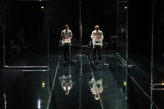 Sie waschen sich rein, die Ärzte in ihren weißen Kitteln, die Imanuel Humm und Rudi Hindenburg verkörpern. Es ist eine Schlüsselszene im Dokumentarstück „LebensWert“, das im Theater Kiel nun auf der großen Bühne läuft. Das Werk, bei dem Marie Schwesinger für Regie und Text verantwortlich ist, befasst sich mit der Euthanasie in Schleswig-Holstein und dem Schweigen der Ärzteschaft, die nach dem Krieg Täter deckte.