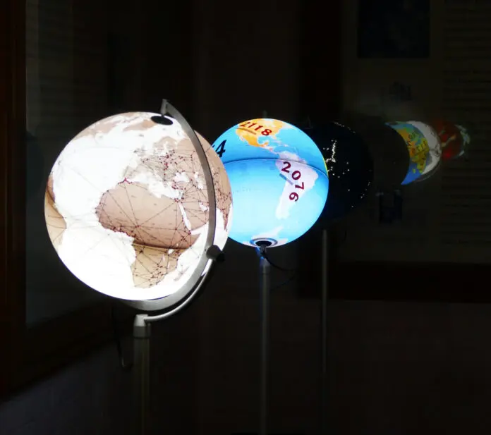 In Schleswig ist der Ausschnitt aus dem „Worldprocessor“ bis zum 27. Oktober im Globushaus im Barockgarten zu sehen. Dort stehen die 24 kleinen Globen in einem Raum genau unter dem großen, nämlich der Nachbildung des Gottorfer Globus. Das begehbare Kunstwerk aus dem 17. Jahrhundert zeigt außen die Welt, soweit sie damals bekannt war, und innen die Sternbilder. Das Original befindet sich heute in St. Petersburg in Russland.