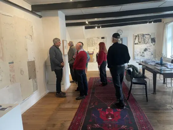 Die erste Ausstellung zeigt Werke von Jan Franzen und seinem Künstlerfreund Manuel Knortz, die trotz ihrer Unterschiedlichkeit aneinander anknüpfen und harmonieren. Auf der Vernissage haben sich bereits gut hundert Gäste ein Bild davon machen können, was die neue Galerie im alten Krog zu bieten hat.
