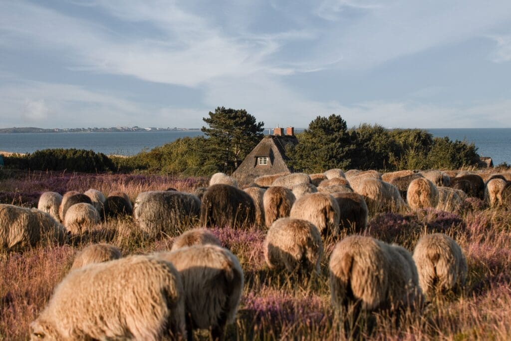 Auf Sylt befindet sich rund die Hälfte der gesamten Heide Schleswig-Holsteins. Ihr Bestand ist gefährdet, würde der Mensch nicht durch regelmäßige Pflege und künstliche Aushagerung der Böden in die Natur eingreifen. Daher engagiert der Landschaftszweckverband seit einigen Jahren Schäferin Uta Wree aus der Nähe von Schleswig nebst ihren vierbeinigen Schützlingen. Und die machen ihren Job sehr gründlich: Etwa neun Kilo vertilgt allein ein Schaf pro Tag. Die knorrigen Heidepflanzen, die andere Artgenossen verschmähen würden, sagen den robusten Fjordlandschafen durchaus zu. „Sie gehören einfach hierher – in dieses Klima, in diese Landschaft. Sie sind seit der Bronzezeit perfekt angepasst an diese Natur“, so die gelernte Tierärztin.