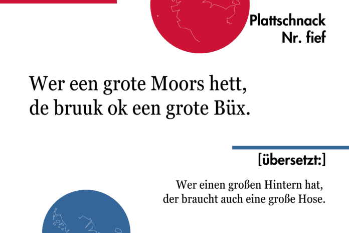 „Wer een grote Moors hett, de bruuk ok een grote Büx.“
