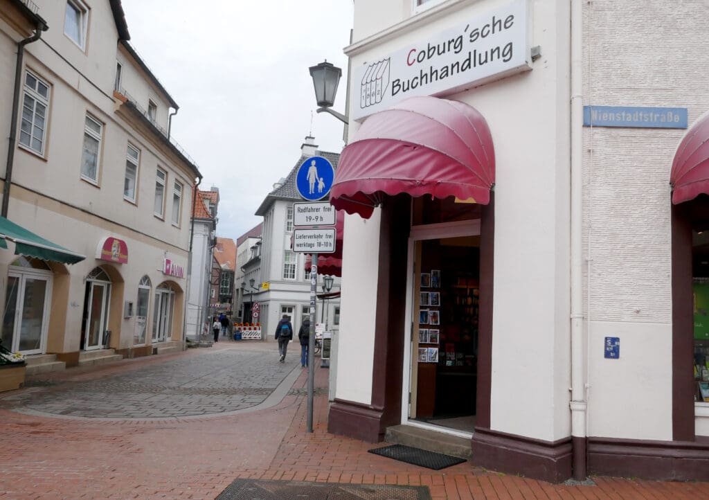 In der Kreisstadt Rendsburg mit ihren knapp 30.000 Einwohner:innen gibt es drei Buchhandlungen, die alle in der Fußgängerzone liegen. Die Coburgsche ist die älteste unter ihren, vielleicht sogar die älteste in Schleswig-Holstein, so steht es zumindest auf der Homepage. Dort findet sich auch die Zeitungsmeldung aus dem Jahr 1862, in der der Gründer Emil Ehlers erklärt, dass er sich trotz der „eigenthümlichen Zustände in meiner Heimath“ – Schleswig-Holstein kämpfte um die Unabhängigkeit von Dänemark und wurde 1862 Preußen angegliedert – an einen „längst gehegten Plan“ wagt und den eigenen Laden eröffnet. Genau 160 Jahre später erfüllte sich Sophie Kühl am selben Ort ihren Traum vom eigenen Geschäft.