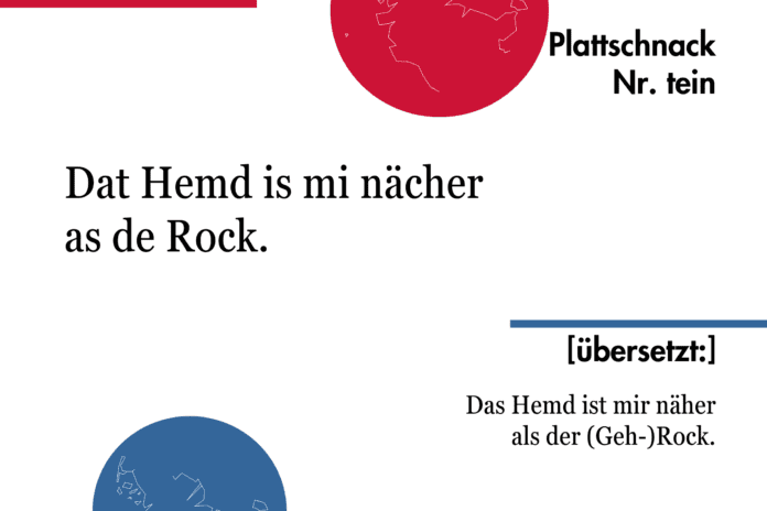 „Dat Hemd is mi nächer as de Rock.“ = Das Hemd ist mit näher als der (Geh-)Rock.