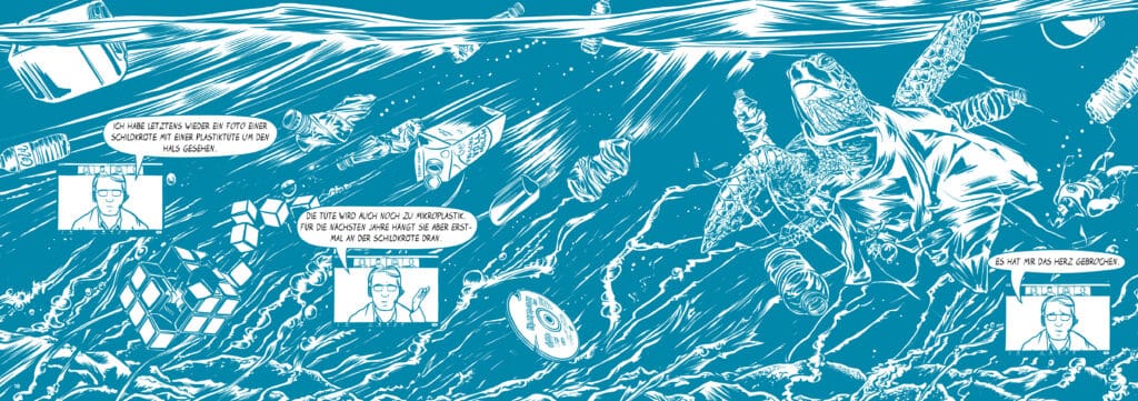 So groß, komplex und abstrakt die Herausforderungen für die Meeresumwelt auch sind, es gibt Lichtblicke und Ansatzpunkte für Zuversicht. Mit der Pure Fruit-Ausgabe zum Meer und dank der Ideen und Geschichten der beteiligten Zeichner*innen Gregor Hinz, Filippo Letizi, Jonas Fischer, Franziska Ludwig, Sarah Gorf-Roloff, Arne Auinger, Tim Eckhorst, Eva Muggenthaler und Volker Sponholz möchte die Bildungsplattform Ocean Summit neue, kreative Perspektiven auf verschiedene Meeresthemen ermöglichen.