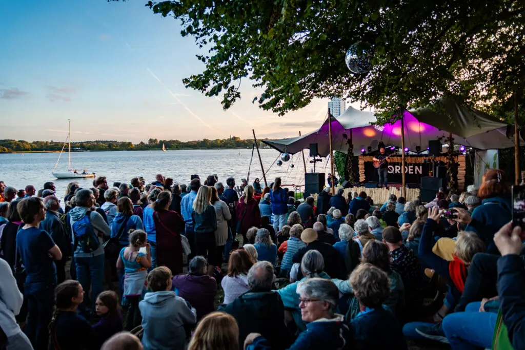 Das zwölftägige Festivalprogramm am Ostseefjord Schlei holt mit seinem Programm die nordeuropäischen Länder an einen Ort, um den Norden mitsamt seiner Lebensart und Kultur zu feiern. Auch optisch wird es „hyggelig“ an der Schlei, wenn sich rote Holzhütten mit bunten Stoffwimpeln zwischen Bäumen und mit viel Liebe zum Detail zu einem Festivaldorf formen. Selbst das Saunafass findet noch einen Platz inmitten von Bühnen, Zirkuszelt und Kunstobjekten. Innerhalb dieser Kulisse gibt es Musik, Literatur, Straßentheater, Kunst, Kino, Workshops und Aktivitäten für alle Generationen. Neu in diesem Jahr ist der Programmpunkt NORDEN LIGHTS: Durch das Lichtkunstfestival sollen die Königwiesen durch kunstvolle Lichtinstallationen noch mehr erstrahlen. Im 68-seitigen NORDEN Magazin findet sich das komplette Festival-Programm. Allein 45 Musik-Acts finden sich darin, deren Bandbreite keine Grenzen kennt und von elektronischem Indiepop über Vintage Rock´n´Roll bis zu Folk, Soul oder Hip Hop etc. reicht. Aus den Niederlanden sind z.B. Elephant, Rommy Gabay, Komodo und POM dabei, aus Dänemark u.a. The Colour, Brothers Moving, JJ Paulo und Ranglekods, aus Deutschland u.a. DOTA, Jupiter Jones und Evelyn Kryger. Estland, Finnland, Lettland, Norwegen und Polen sind ebenfalls musikalisch vertreten. – Gut zu wissen – 2023 wurde das NORDEN mit dem HELGA! Festival Award in der Kategorie „Grünste Wiese“ mit dem ersten Platz ausgezeichnet, damit gilt es offiziell als das nachhaltigste Festival Deutschlands.
