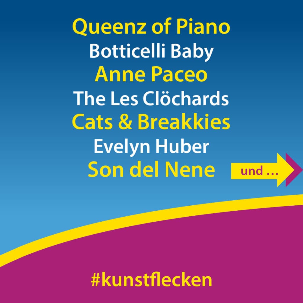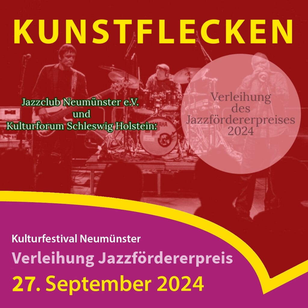 Seit 1999 gibt es das spartenübergreifende Kulturfestival Kunstflecken in Neumünster. Auch in diesem Jahr zieht sich an insgesamt 14 Tagen ein üppiges Programm (Flyer als PDF) aller Sparten durch die Stadt und macht die Vielfalt der Kunstszene erlebbar.