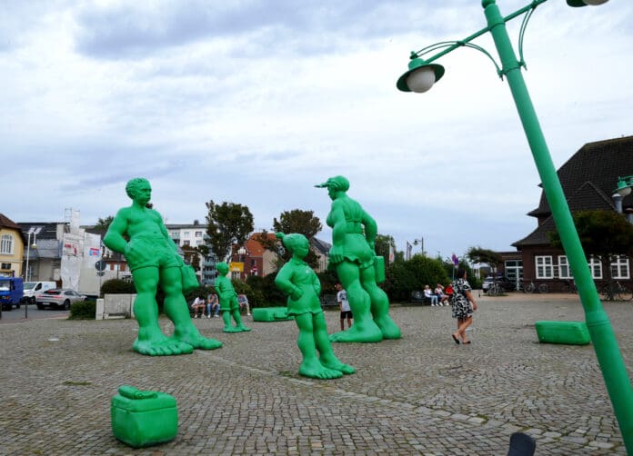 Kleiner Exkurs zum Titelbild und nach Nordstrand: Um Martin Wolke und seine „Reisenden Riesen im Wind“ geht es auch in Ortsbilder: Nordstrand und viermal Kunst.