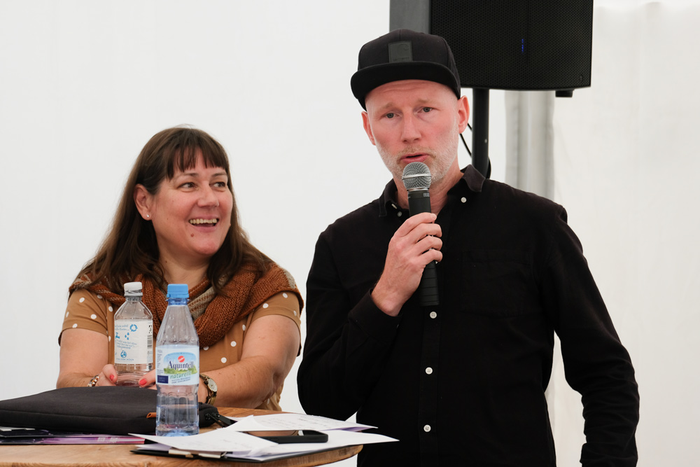 Eine dauerhafte Koordinationsstelle und transparente Richtlinien – vor allem über die Forderungen zwei und drei wird heute gesprochen. Auf dem Podium berichtet Fabian Schmitt von den Anfängen des Liveszene-Netzwerkes: In den Corona-Jahren suchte er als Mitorganisator des Skandaløs-Festivals für Musik und Utopie im nordfriesischen Neukirchen den Kontakt zu anderen Festivals im Land. Aus den anfänglichen Rundmails wurden bald Videokonferenzen, durch die damalige Pop-Referentin des Landesmusikrats Nina Graf kam der Impuls, den Kreis von Festivals auf die gesamte Liveszene zu erweitern. Koordination und Organisation des wachsenden Netzwerkes wurde schließlich von der Pop-Referentenstelle übernommen und so verstetigt. Im Januar übernahm der Musiker Ingo Hassenstein den Posten von Nina Graf. „Erstaunlich, wie viel eine Person erreichen kann, die sich nicht auch noch um ihr alltägliches Veranstaltergeschäft kümmern muss. Das ist unglaublich wichtig für die Liveszene“, sagt Schmitt über das bisher erreichte.