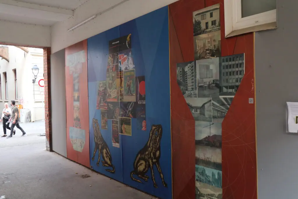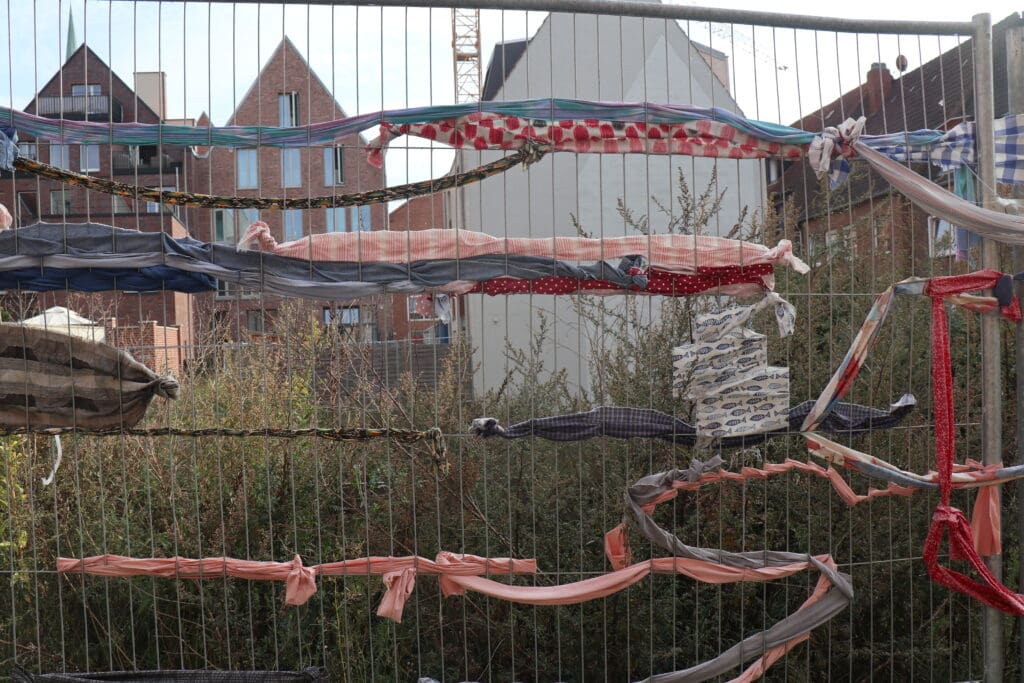 Auch Arbeiten mit Stoff gibt es häufig zu sehen, hier an einem Bauzaun.