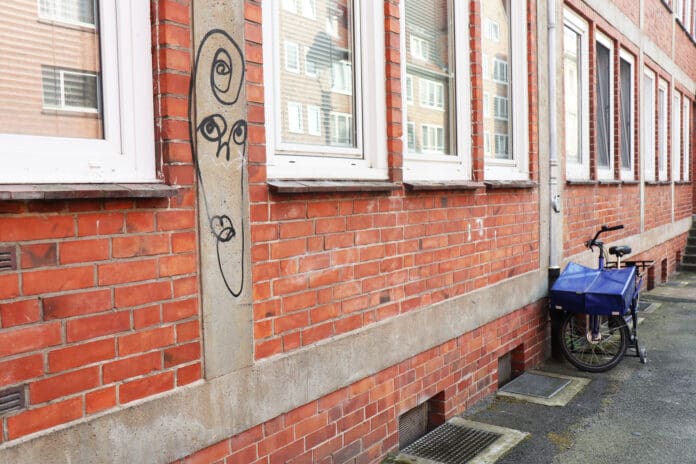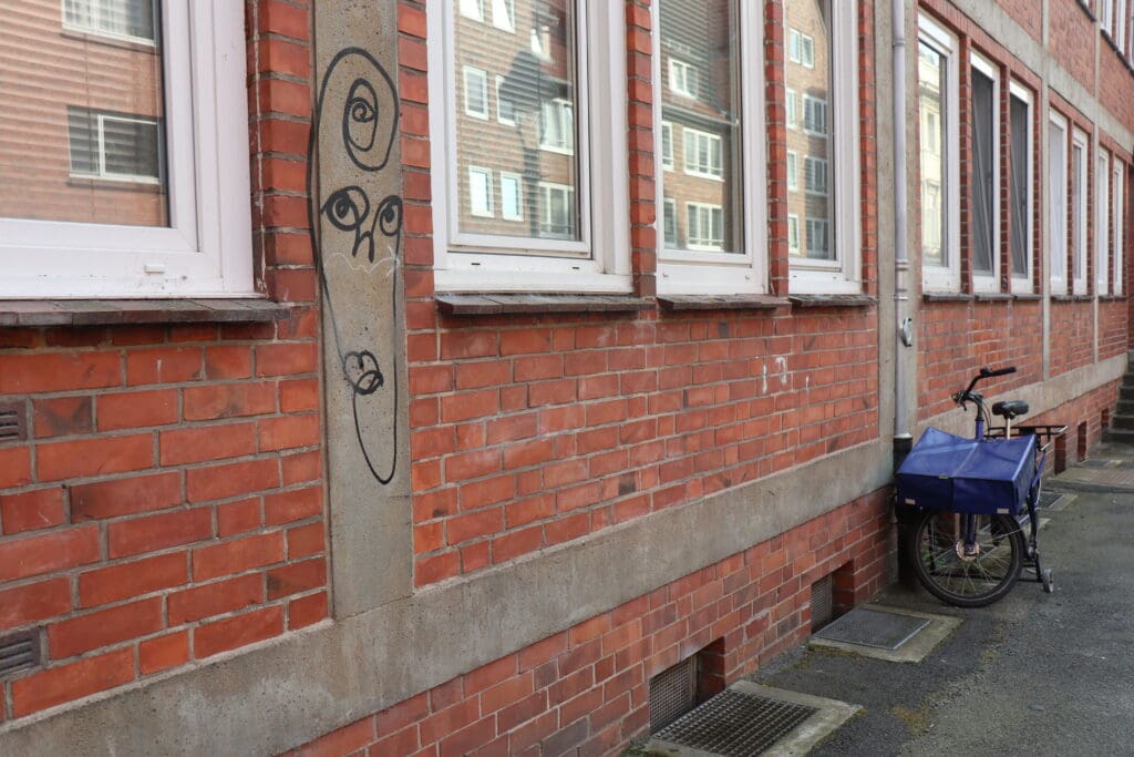 Begegnen einem immer wieder auf einem Spaziergang durch Lübeck: Graffiti, die an Picassos Strichzeichnungen erinnern.