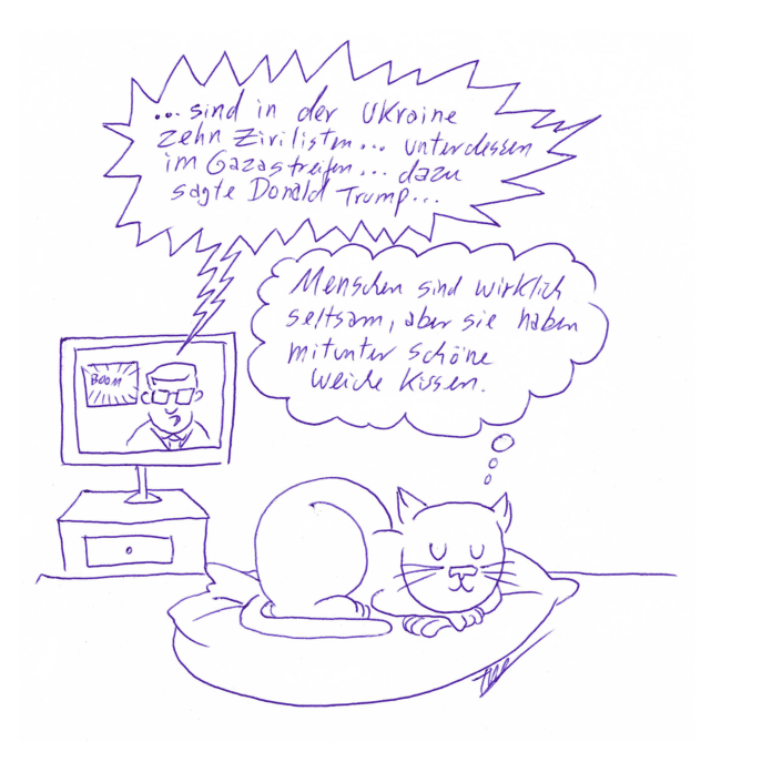 Katze: Menschen sind wirklich seltsam, aber sie haben mitunter schöne, weiche Kissen.