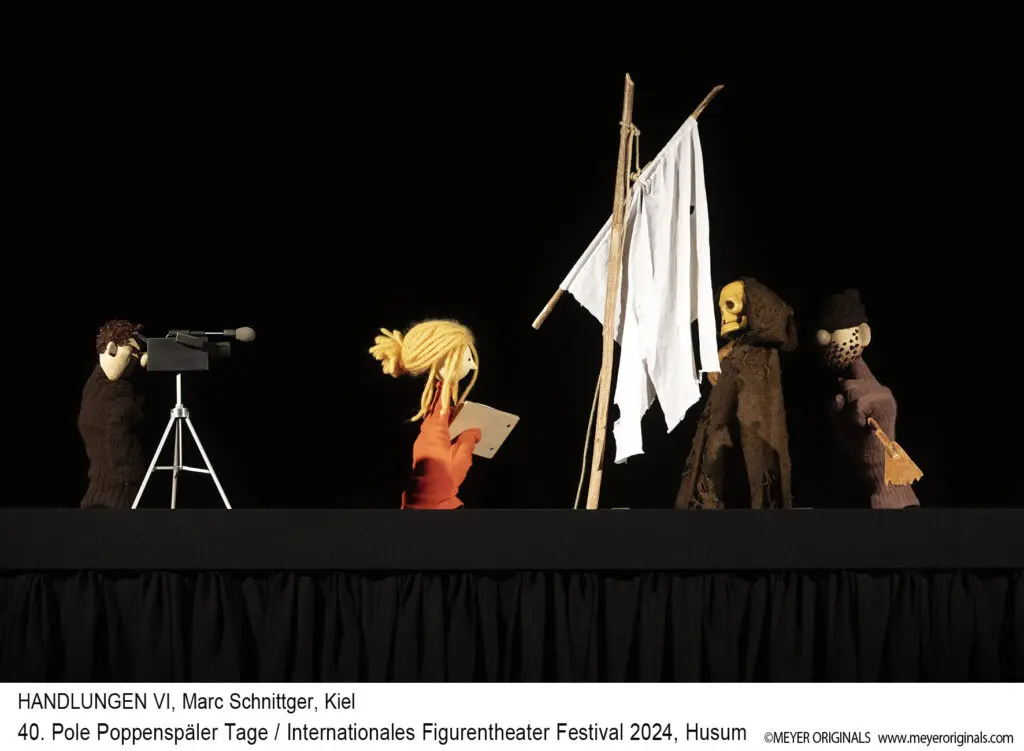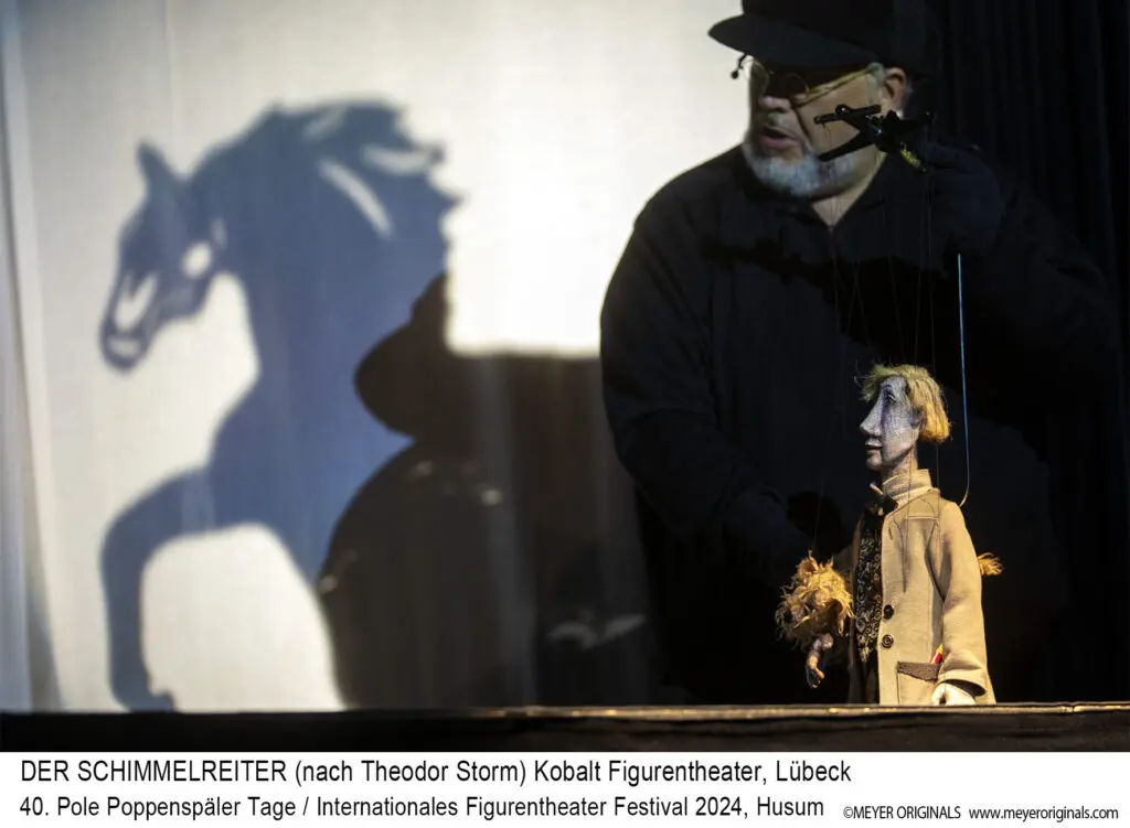 Für die Figurenspieler:innen sind die Poppenspäler-Tage ein Branchentreff – und für viele bedeutete die Husumer Bühne den Karrierestart. Darunter war der Kieler Marc Schnittger, wie er nach der Aufführungen von „Handlungen VI“ im Rittersaal des Schlosses vor Husum berichtete: „In ebendiesem Saal habe er vor 40 Jahren eine Aufführung von Gerhard Mensching gesehen, der es zu verdanken sei, dass er das Puppenspiel zu seinem Beruf gemacht habe.