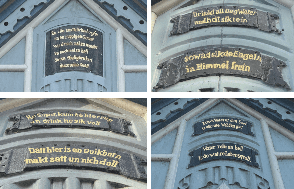 Was sagt ihr? Ich bleibe dabei: Das beste Groth-Gedicht ist dieses hier wirklich nicht. Aber es passt zu einem Brunnen, oder – wie Groth (statt Brunn´) sagen würde: to en Soot oder en Qui[c]kborn.