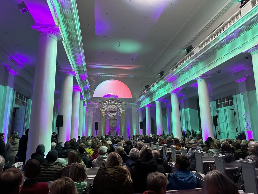 Die fünfte Station des Husumer Lichtkunstfestes bringt alle vier Elemente in der Marienkirche auf dem Marktplatz zusammen. Sie trägt den Titel „Energie“. Bei freiem Eintritt und vor voll besetzten Kirchenbänken gibt der Nordfriese Jan.Solo ein Konzert in der lichtdurchfluteten Kirche. Hier zeigt sich das Team um das Lichtkunstfest ein weiteres Mal mutig: Heute wird gerappt in den heiligen Hallen: „Am Hafen brennt noch Licht!“