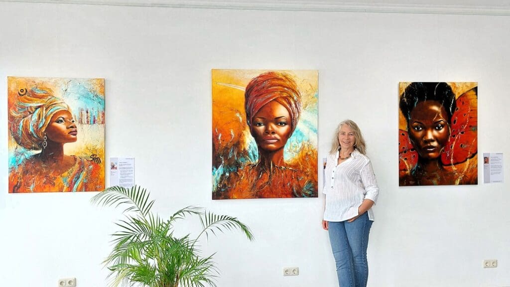 Die Leidenschaft von Bianca Leidner für die Malerei jedoch ist ungebrochen. Sie hat Nachrichtentechnik studiert und als Softwareentwicklerin gearbeitet. Nach einem Urlaub in Ghana hat sie sich der Malerei für Afrikafreunde verschrieben. Die Natur, die Menschen und Tiere, die Art zu leben – Leidner bringt ihre Sehnsucht auf die Leinwand. In großen Motiven und kräftigen Farben spürt man die Kraft und die Schönheit des Kontinents. Leidner hat schon als Kind gemalt und sich als Autodidaktin alles selbst beigebracht. „Ich habe mir Künstler zum Lernen und Workshops gesucht“, erzählt sie.