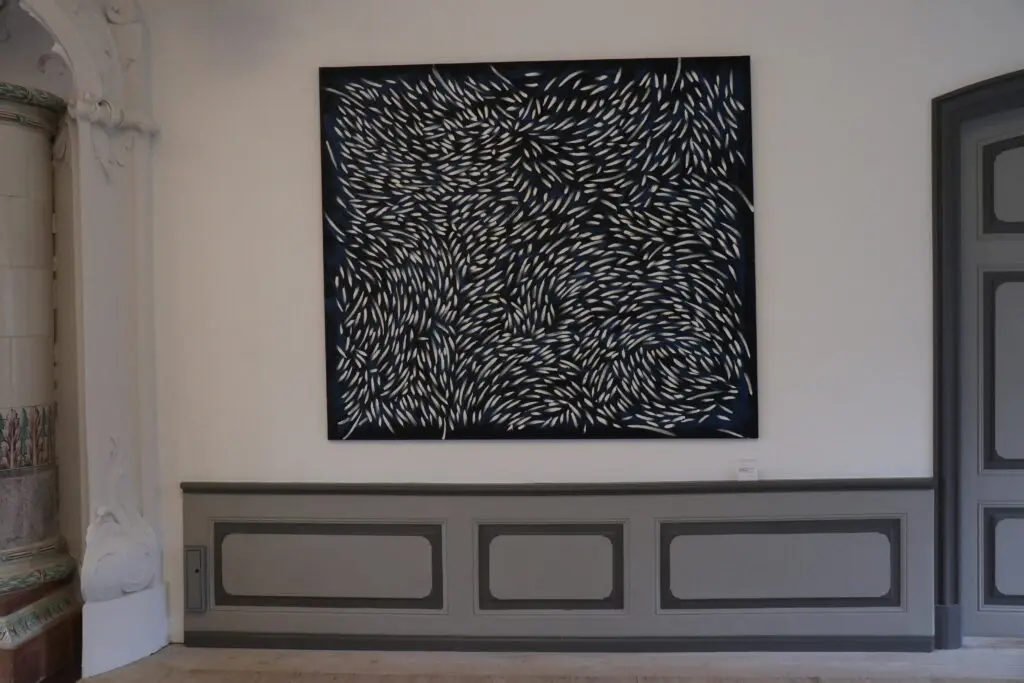 Die Ausstellungseröffnung am 19. Januar, einem Sonntag, also Ruhetag, ist natürlich gar nicht still. Die Leute unterhalten sich, es sind viele gekommen, „Sekt oder O-Saft?“, ein Glas zerbricht, wir hören Kinderstimmen und beschwipste Erwachsene.