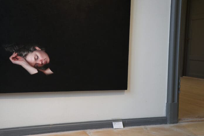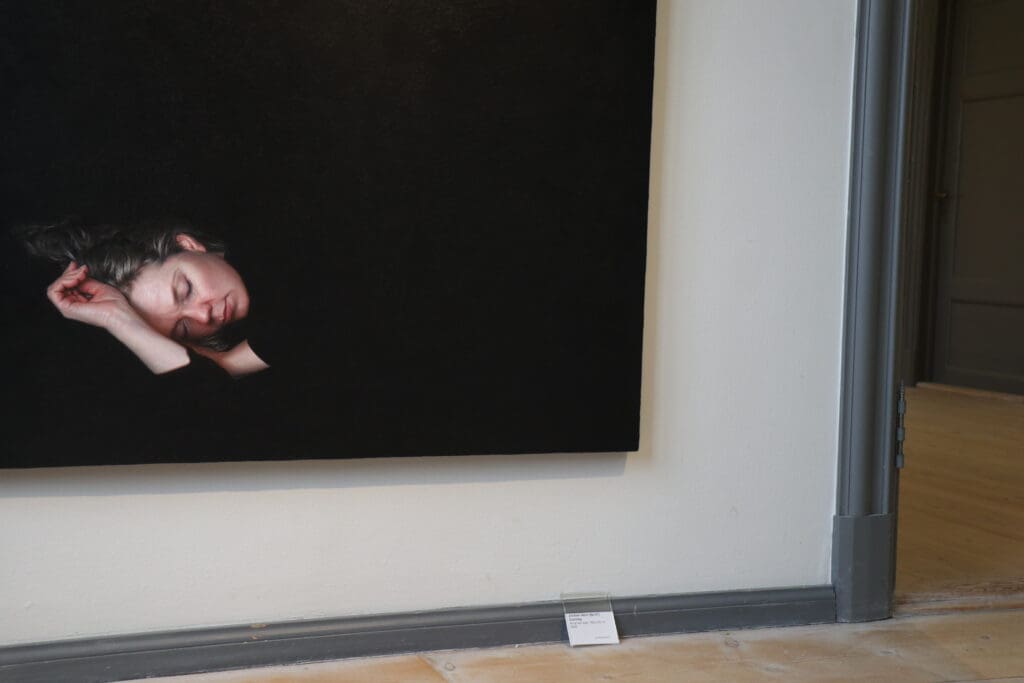 Nur die Gesichter und Hände der Portraitierten sind zu sehen, ihre Körper verbirgt die Schwärze – sie sehen so aus wie wir in unseren dicken Wintermänteln oder wie Schauspieler*innen auf einer dunklen Bühne. Nichts lenkt uns vom Wesentlichen ab. Und das ist keineswegs die Frage danach, was uns der Künstler sagen will, sondern: Was sagen uns die Gemalten? Was teilen sie uns schweigend mit? Denn in der Stille hören wir nicht nur uns selbst, sondern auch die anderen.