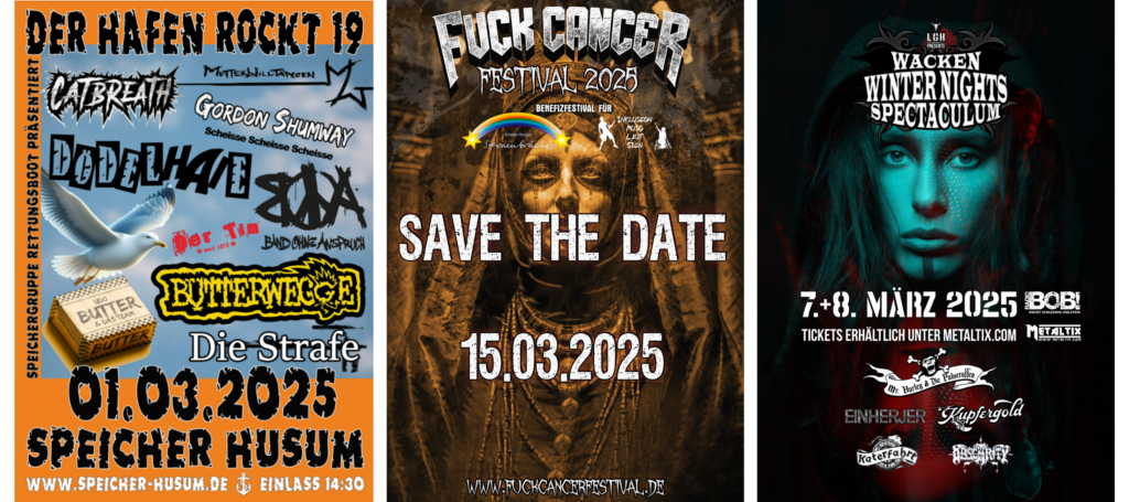 Der Festivalmärz kommt mit Vorboten des Sommers um die Ecke. In Scheggerott, Schleswig, Taarstedt und Wacken können wir uns schon mal warm machen. Das könnte doch guttun in der Tristesse. Außerdem zeigt das traditionelle Husumer TSS-Bandfestival, wie stark Musik in der Schule sein kann. Stark mit Musik macht sich auch das Benefiz-Festival Fuck Cancer und wird laut für den guten Zweck. In Husum rockt der Hafen, in Joldelund internationale Bluesbands. Es ist und bleibt schön viel los.