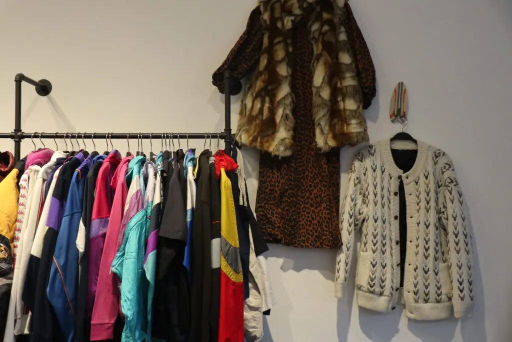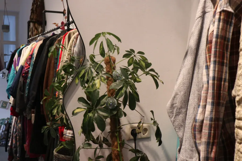 Sintjes Hauptkriterium: Material. Natürlich würde sie auch mal Dinge aus Polyester kaufen, wie die typischen Nylon-Windjacken aus den 80er Jahren. Aber bei anderen Kleidungsstücken achte sie auf hochwertige Materialien. Für den kommenden Sommer hat sie viele Hemden gekauft: „Alles 100 Prozent Seide. Neu würde ein Hemd mindestens 100 Euro kosten.“ Und noch etwas ist Sintje dabei wichtig: Sie unterstützt mit dem Kauf von Vintageleder und -seide keine Neuproduktion, für die Tiere sterben müssen.