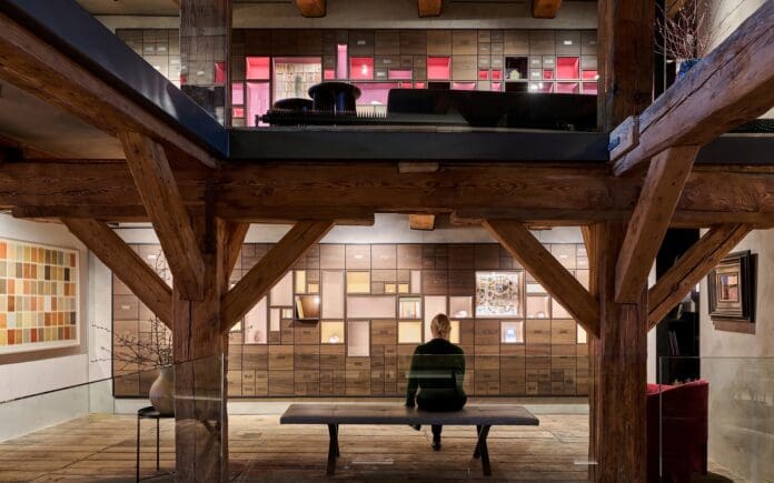 Der alte Speicher hat sieben Geschosse. Böden nannte man das früher. Man betritt das Kolumbarium durch eine schwere Holztür und steht zunächst in einer kleinen Empfangshalle. Moderne Stühle und Tische, ein Schreibtisch, der Look ist aufgeräumt und clean. Hier werden die Gäste des Hauses von den Trauerbegleitern begrüßt. Es kommen Angehörige, aber auch Menschen, die sich für eine Beisetzung interessieren oder einen Urnenplatz reservieren möchten.