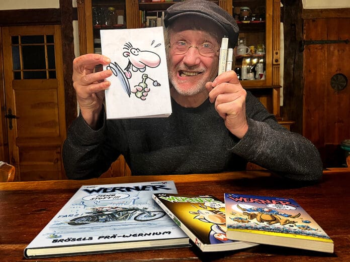 Heute, am 17. März 2025, wird der schleswig-holsteinische Comiczeichner Rötger „Brösel“ Feldmann (*1950 in Travemünde) 75 Jahre alt. Zur Ruhe setzt er sich nicht. Immer noch zeichnet er, erdenkt sich neue und überarbeitet alte Geschichten. Seine bekannteste Figur „Werner“ hat er in 13 Comicbänden, mehreren Sonderveröffentlichungen und fünf Filmen in Szene gesetzt und zur Marke gemacht.