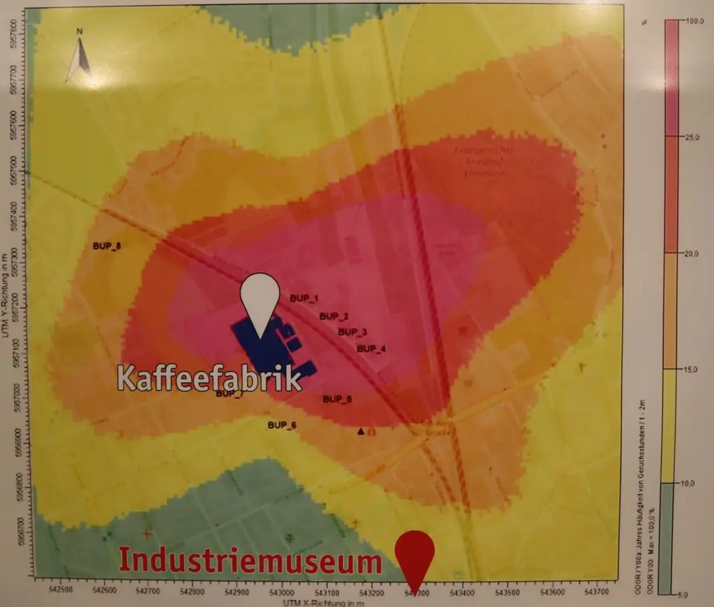 Dass viele Gerüche der Industrien noch heute präsent sind, zeigen an der Decke schwebende Wolken mit Kommentaren von BesucherInnen. So können ElmshornerInnen riechen, welche Müslisorte gerade in der Kölln-Haferflockenfabrik produziert wird: „Heute wieder Schokomüsli!“