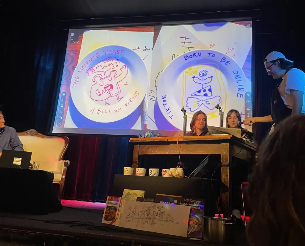 Auch danach blieb es interaktiv: Zuschauer:innen konnten sich auf Zuruf melden, um selbst gezeichnet zu werden für ihr eigenes fiktives Kochbuch. Dabei entstanden Titel wie „Cool kochen mit Sonnenbrille“ oder „Schnelle Schnurrbartgerichte für zwischendurch“.
