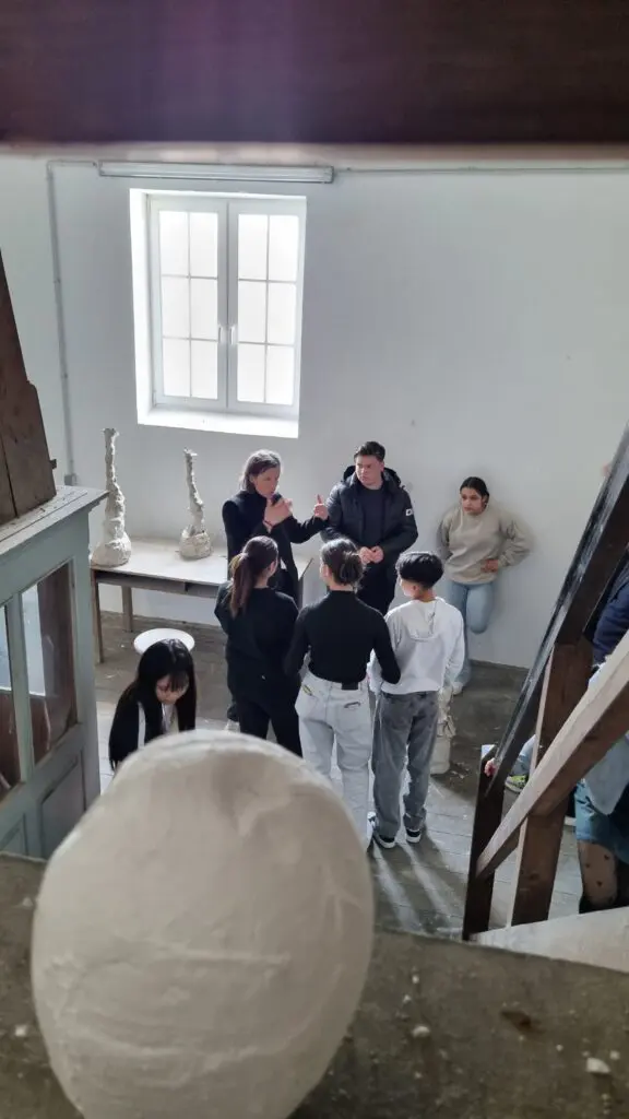 Eine Ausstellung mit zeitgenössischer Kunst haben die meisten noch nie besucht. „Krass“ finden viele, was sie sehen. Sie zücken die Smartphones und posieren zwischen Ton und Turmuhrmechanik. „Können wir auch mal mit Ton was machen?“, fragen sie die Kunstlehrerin, die nickt.