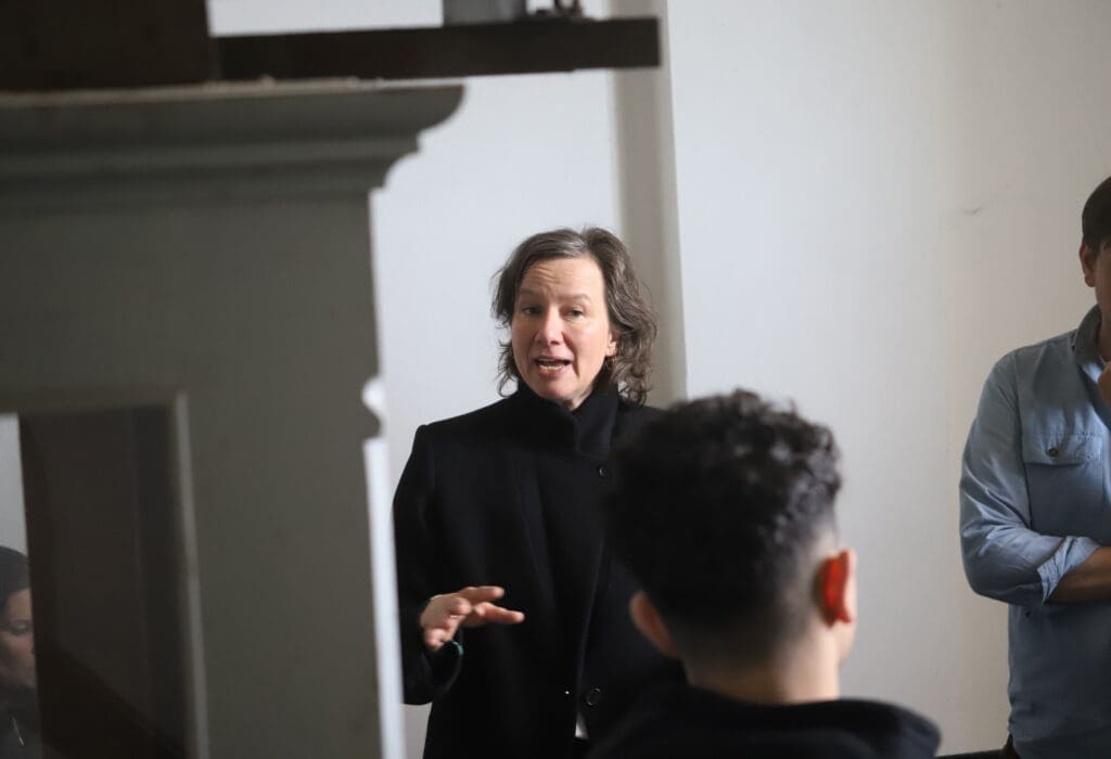 Das Atelier in der Schule – für die Künstlerin wurde es zum Paradoxon. „Nichts ist so unöffentlich wie ein Schulraum“, sagt sie. Denn in die Schule strömen vormittags zwar die Schülerinnen und Schüler, das Turmzimmer aber bleibt ihnen verschlossen. Ebenso wie für Nadine Kles die Schule jenseits der Unterrichtszeiten verschlossen ist. Die Interaktion mit Klassen funktioniert selten spontan, dennoch besucht sie wieder und wieder den Unterricht und diskutiert mit den Jugendlichen.