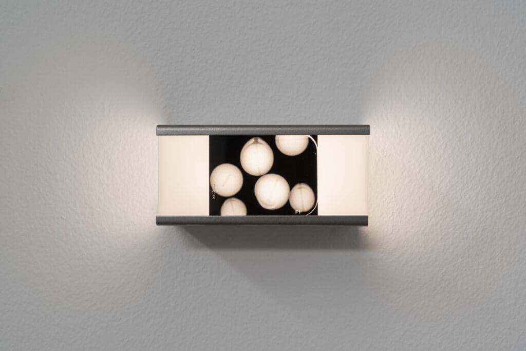 Weiter führt der Weg um das lange ‚Publikums-Sofa‘ herum, an vier Leuchtstoffröhren entlang. Sie zeigen eine Reihe von Röntgenbildern: Perlen, von Fingern gehalten, lose arrangiert oder zu Ketten zusammengefügt. Die faszinierenden Naturprodukte entstehen, sobald ein Fremdkörper in die Muscheln eindringt. Sie sind ein Verteidigungsmechanismus gegen einen Eindringling oder Reizstoff und als Schutzreaktion wird dieser Schicht für Schicht mit Perlmutt umhüllt. Perlen werden seit Anfang des 20. Jahrhunderts als Massenware gezüchtet, als “Zuchtperle” in unterschiedlichen Qualitäten – als „kontrolliertes Produkt, das durch ein gezieltes menschliches Eingreifen entsteht, geplant und reproduzierbar ist“, so erklärt Paula Komoss. Die Röntgenbilder offenbaren das Innere der Perlen und zeigen, die unterschiedlich großen und von Menschenhand eingesetzten Nuklei, die von oft nur hauchdünnen Perlmuttschichten umhüllt sind. Asta Lynges Röntgenbilderreihe macht die dahinterstehende Industrie und die oft brutalen Verfahren sichtbar, die der Öffentlichkeit kaum bekannt sind. Es geht um Offenlegung, um Sichtbarmachen des Unsichtbaren. Auf den Röntgenperlen sind im Vergleich zur ‚echten‘ Perle auch Plastikperlen zu erkennen, die gar keinen inneren Kern haben.
