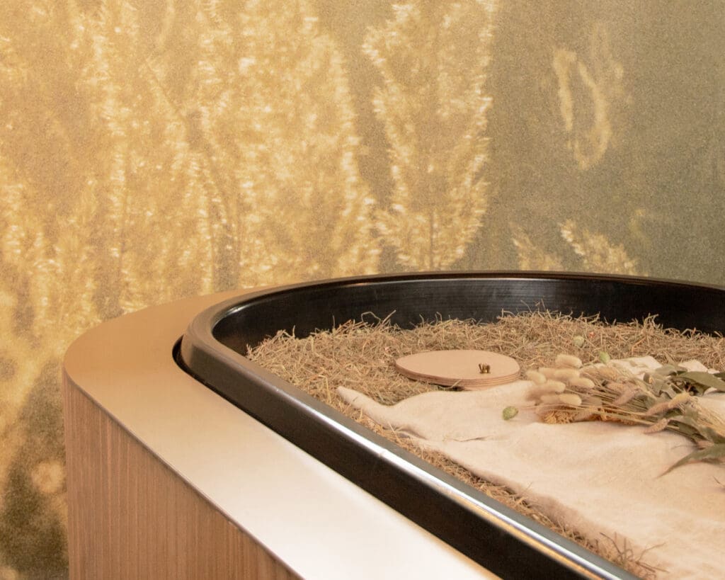 „Alvarium“ nennt Metz die kleine Kapelle in Mölln, einem Städtchen, in dem im Februar 2022 die erste Reerdigung in Europa durchgeführt wurde. Der 44-jährige Pablo Metz und sein Geschäftspartner Max Hüsch haben die gemeinsame Firma Circulum Vitae GmbH gegründet. Unter der Marke „Meine Erde“ promoten sie ihre Reerdigung deutschlandweit als sanfte Methode der Bestattung im Einklang mit dem Kreislauf der Natur. Dabei wird ein Mensch nach seinem Tod in einen „Kokon“ gelegt und von Mikroorganismen zu Erde umgewandelt. Der Kokon, das Alvarium, das sind Elemente einer „schönen Sprache“ wie Metz sagt, die auf ein geschicktes Marketing einzahlt. Es werde immer nur mit Scheu über den Tod gesprochen, so Metz. „Das wollen wir nicht.“