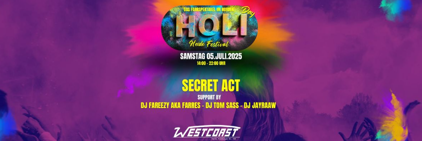- 05. JULI: HOLI-DAY HEIDE FESTIVAL, HEIDE → „das Farbspektakel im Norden“ mit drei DJs, einem Secret-Act und sehr viel Farbpulver