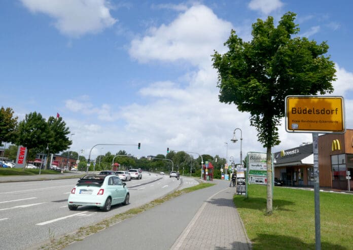 Der Verkehr der Hollerstraße rauscht beständig, nur wenn die Ampeln auf Rot schalten, herrscht kurz Ruhe. An manchen der Fußgängerampeln zählen Anzeigen die Sekunden ab, die zum Queren der Straße bleiben. Büdelsdorf, die „junge Stadt“, lässt dem motorisierten Verkehr viel Raum. Die Hollerstraße mündet auf der einen Seiten in die Brückenstraße, die nach Rendsburg führt, und am nordwestlichen Stadtrand in die Bundesstraße 203. Die Straße ist eine Lebensader – aber alles andere als gemütlich. Zwar gibt es neben zahlreichen Läden auch Cafés, Bäckereien und Restaurants. Aber die meisten Gäste sitzen lieber drinnen statt im Lärm und in den Abgasen des Verkehrs.