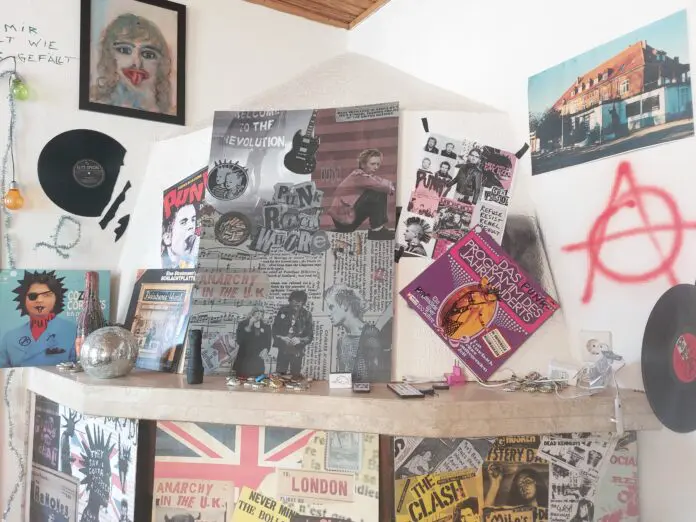 „Eine Ausstellung, bei der eine Punkband spielt“, so fasst ein Mitstreiter von Olaf, Andreas Koepsell, die Pläne der Punk-WG für die Kult(o)urnacht zusammen. In der Ausstellung soll die Geschichte der Punkbewegung vermittelt werden. Aber auch jetzt schon gibt es in dem Haus viele Details zu entdecken, Kunstwerke, die noch im Entstehen sind. Die Besucher*innen sollen auch einfach selbst an die Wand sprühen. In der wachsenden Ausstellung spielt am Sonnabend dann Blunt Break aus Ostholstein. Nach ihrem Konzert geht der Hut rum.