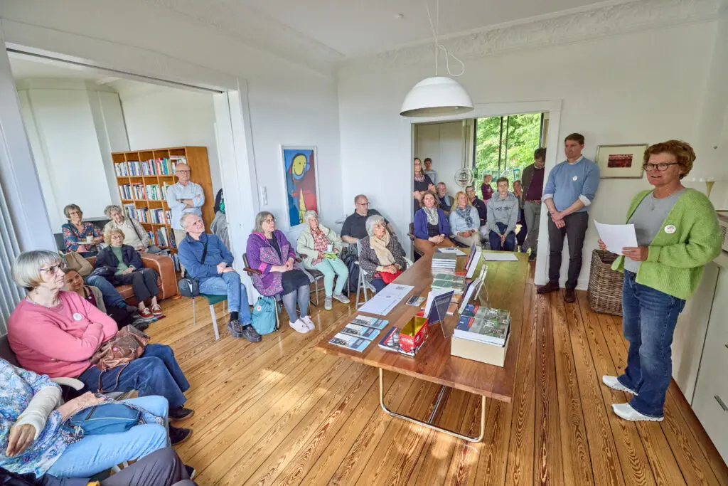 Gemeinsam mit ihrer Mutter, der Politikwissenschaftlerin und Künstlerin Jani Pietsch, erforschte Rolshoven die Geschichte des Hauses und lud Gäste ein, die sich an die ehemaligen Bewohner:innen erinnern wollten. Bei der ersten Veranstaltung saßen neun Personen um den Küchentisch der Wohnküche, im nächsten Jahr schon doppelt so viele. Auch im Atelier der Mutter fanden Treffen statt. Wie genau die Veranstaltungen ablaufen, ist immer etwas unterschiedlich. Aber die Atmosphäre sei ganz anders als etwa bei einem Besuch in einer Gedenkstätte, berichtet Rolshoven bei einem Pressegespräch in Rendsburg. „Es fühlt sich an wie bei einer privaten Feier. Man kommt ins Gespräch, tauscht sich aus.“