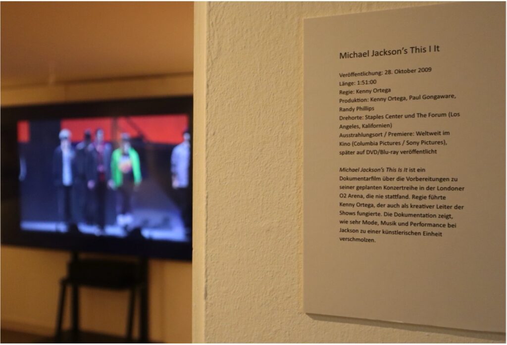 Das Herzstück der Ausstellung bildet der knapp zwei Stunden lange Dokumentarfilm „Michael Jackson’s This Is It“, der 2009 erschienen ist und die Vorbereitungen auf die geplante gleichnamige Tour sowohl vor als auch hinter der Bühne thematisiert. Die Tour sollte die letzte seiner Karriere sein, konnte jedoch durch Jacksons vorzeitigen Tod nicht realisiert werden. Hier sticht vor allem heraus, mit welch einer Wertschätzung Jackson das gesamte Team behandelt.
