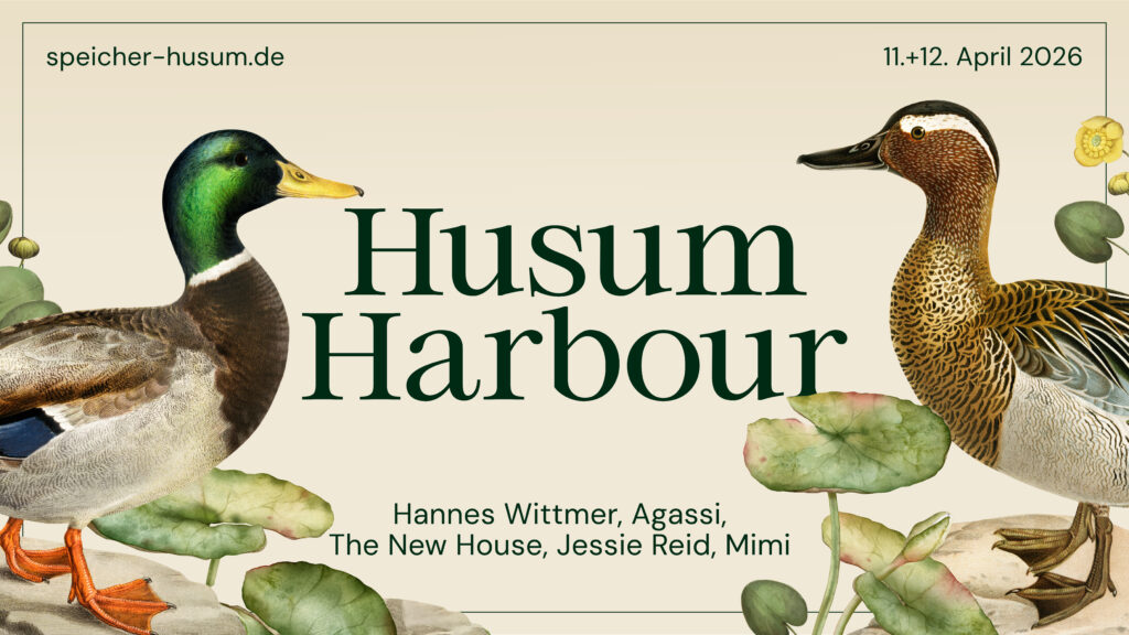- 11. – 12. APRIL: HUSUM HARBOUR, HUSUM → Bei der 14. Ausgabe von Husum Harbour (Erstausgabe 2011) spielen Hannes Wittmer, Agassi, Jessie Reid und Mimi (Samstag) und The New House (Sonntag) im Speicher, direkt am „Husum Harbour“.