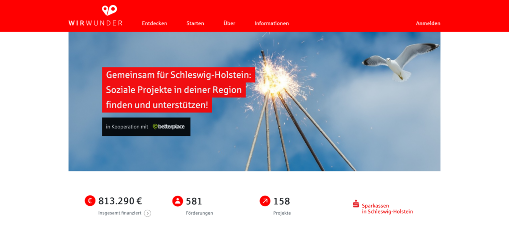 Mit „wirwunder“ bündeln die Sparkassen erstmals landesweit ihr gesellschaftliches Engagement auf einer digitalen Plattform. Initiativen können hier ihre Projekte einstellen, Förderanträge stellen sowie Spenden sammeln und Unterstützer:innen erreichen. Gleichzeitig entsteht ein digitales „Schaufenster“ für das Gemeinwohl.